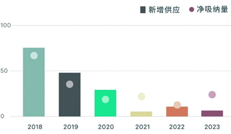 预测2024年,西安写字楼市场将迎来45.4万平方米的新增供应,其中超过86%为甲级楼宇。供给放量叠加,不少优质项目在2024年将面临较大面积的租户到期退租风险,租金表现仍将承压下行。需求端来看,随着经济的进一步复苏,金融和专业服务的需求将保持稳定增长。同时年底发布的《西安市推动数字经济高质量发展若干措施》再次明确提出要加快数字基础设施建设和支持数字产业发展,数字经济的加速发展将持续衍生科技互联网类办公需求,产业需求动能不减。