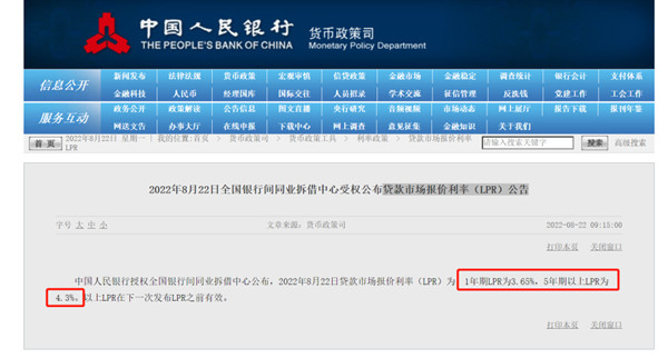 以及2022年8月22日央行下调LPR,贷款利率降低。