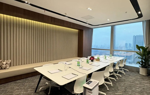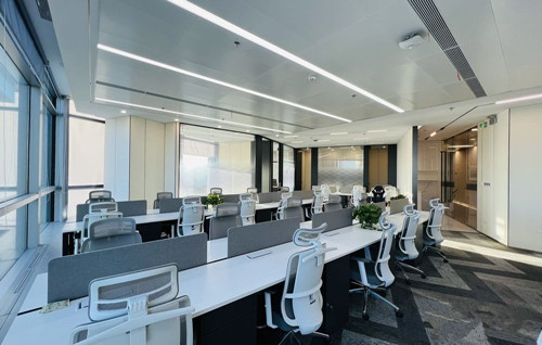 现出租的443平方米办公室,精装修,带家具,室内有4间办公室,一个会议室,一个敞开办公区