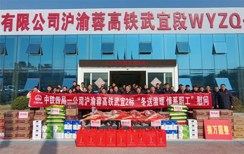 在中铁四局一公司沪渝蓉高铁武宜段2标项目,公司工会主席、副总经理胡月樵向一线职工致以亲切的问候,向寒冬坚守在工作岗位上的干部员工表示衷心的慰问。“娘家人”每到一处,都与在岗职工亲切交谈。每到一站,都详细询问各项工作的安全情况、时间安排,并查看了工作生活期间伙食情况,叮嘱项目领导要做好员工关爱行动,确保每一位员工都能在寒冷的冬季“上班安心 吃得放心”。