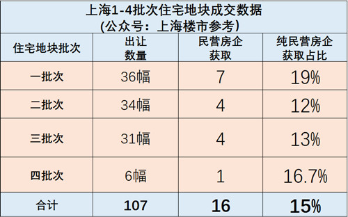 4批次累计出让住宅用地107幅。其中,国/央企轻轻松松拿走91幅,占比 85%,民营房企拿走16 幅,仅占比15%